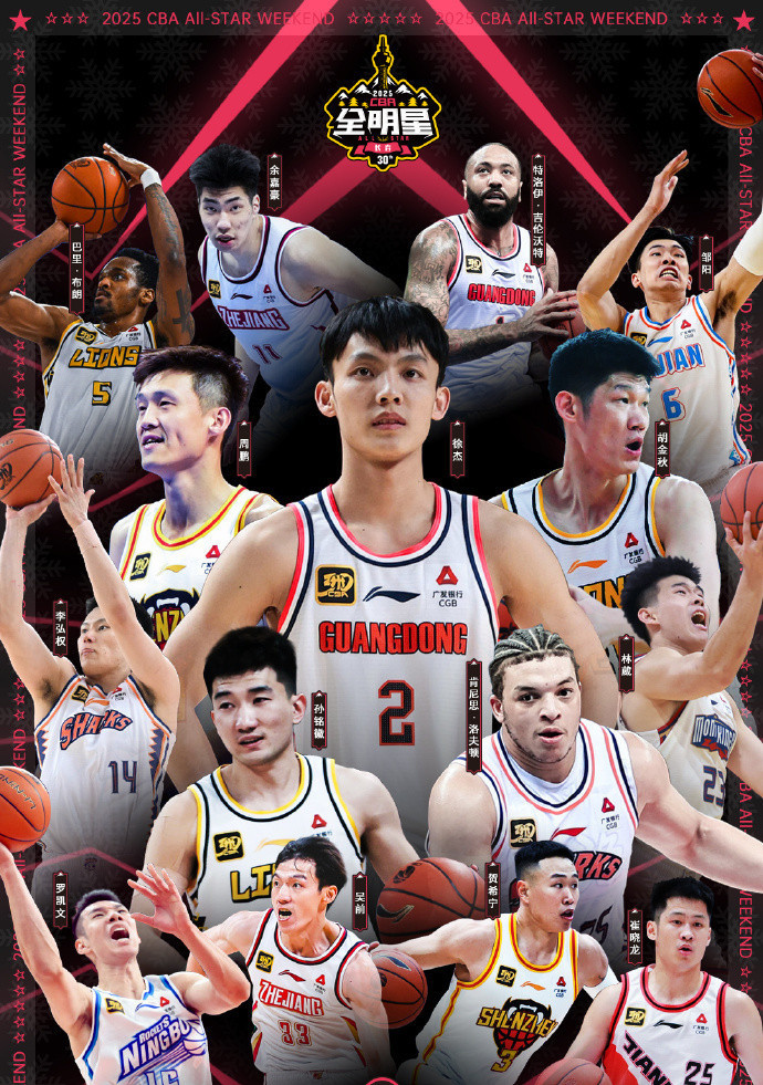 2025年CBA迎来全明星30周年,也是时隔24年重回吉林长春举办。全明星周末正式比赛将在3月1日-2日进行,其中包括两场星锐赛、三项单项赛与全明星正赛,原帅冲击第3次三分王,迪亚洛冲击NBA+CBA双料扣篮王,郭艾伦因伤无缘参加,还有周琦、赵睿、胡金秋、孙铭徽等球星领衔全明星正赛。1996年首届CBA全明星将集体回归赛场获得致敬,并担任领队与顾问,姚明与未公布的奥运冠军等也将亮相,令人期待今年的CBA全明星周末能够带来何种精彩。